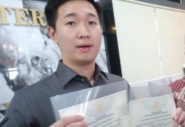 Tim Kuasa Hukum Jawa Pos Daniel Julian Tangkau, SH., M.Kn., LL.M memperlihatkan bukti kepemilikan Saham PT. DNP
