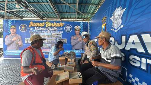 Selain pembagian makanan, sambung Andy, anggota Satlantas Polres Situbondo juga menyisipkan edukasi ringan tentang keselamatan lalu lintas dan pentingnya penggunaan helm serta kelengkapan kendaraan.