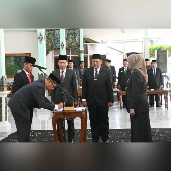 Sebagai salah satu bentuk penyegaran dan peningkatan karir bagi pejabat di lingkup Pemerintah Kabupaten Madiun, maka Bupati Madiun H. Hari Wuryanto, S.H., M.Ak melantik dan mengambil sumpah janji kepada 16 Pejabat Tinggi Pratama di Pendopo Muda Graha, Kabupaten Madiun, Kamis (21/8/2025). Dari pejabat yang dilantik itu, sebagian besar hanya perotasian jabatan.