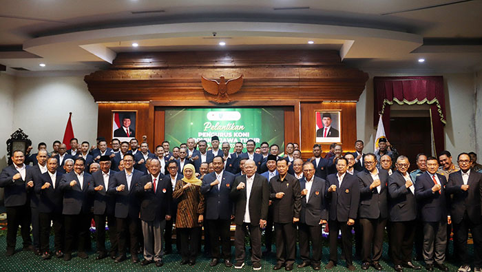 Ketua Komite Olahraga Nasional Indonesia (KONI) Pusat, Marciano Norman, resmi melantik kepengurusan KONI Jawa Timur periode 2025-2029 di Gedung Negara Grahadi, Surabaya, Selasa 10 Februari 2026.