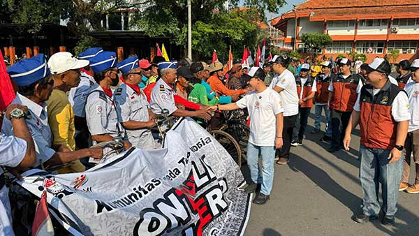 Kontingen Komite Olahraga Masyarakat Indonesia (KORMI) Kabupaten Mojokerto cabang Komunitas Sepeda Tua Indonesia (KOSTI) secara resmi dilepas Bupati Mojokerto Moh. Albarra dari Halaman Pemkab Mojokerto menuju ajang Festival Olahraga Masyarakat Nasional (Fornas) VIII 2025 di Nusa Tenggara Barat (NTB), Minggu (20/7) siang.