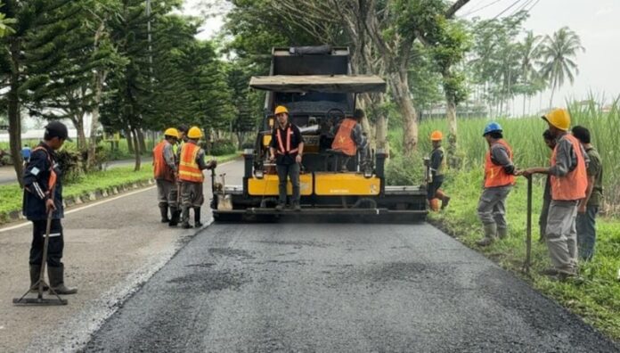 Proyek perbaikan jalan yang dilakukan DPUBM Kabupaten Malang di kawasan Jalur Lingkar Barat (Jalibar), Kec Kepanjen, Kab Malang. foto: cahyono/Bhirawa.
