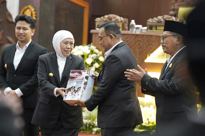 Hal tersebut disampaikan Gubernur Jawa Timur, Khofifah Indar Parawansa, dalam Nota Laporan Keterangan Pertanggungjawaban (LKPJ) Tahun Anggaran 2025 pada Rapat Paripurna DPRD Jatim, Senin (30/3/2026).