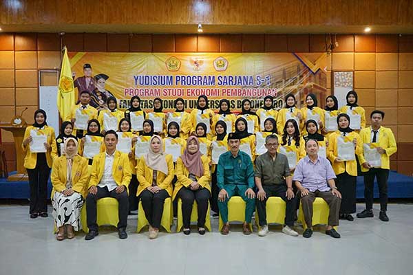 Fakultas Ekonomi Universitas Bojonegoro (Unigoro) menggelar Yudisium Sarjana Strata 1 (S-1) Prodi Ekonomi Pembangunan Tahun Akademik 2024/2025, Kamis (27/2). 27 mahasiswa dinyatakan resmi menyandang gelar sebagai sarjana ekonomi (SE). Mereka adalah mahasiswa lulusan tercepat dengan masa pendidikan tujuh semester melalui jalur publikasi karya ilmiah dan skripsi.
