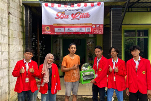 Mahasiswa Kuliah Kerja Nyata (KKN) R12 Universitas 17 Agustus 1945 (Untag) Surabaya yang tergabung dalam Sub Kelompok 5 Desa Sumber Kembar, Kecamatan Pacet, Kabupaten Mojokerto, melaksanakan kegiatan pengabdian masyarakat dengan memberikan mesin pemotong ubi kepada pelaku UMKM Cekeremes Bu Lilik.