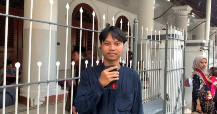 Mahasiswa Ilmu Komunikaasi Untag, Rixky Putra Effendy saat liputan di Makam Sunan Ampel Surabaya.