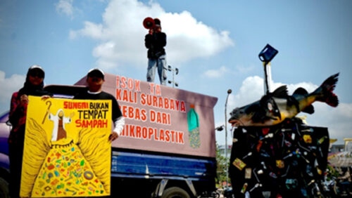 Mahasiswa Magang Untag Surabaya Bersama Ecoton Aksi Damai Selamatkan Kali Surabaya
