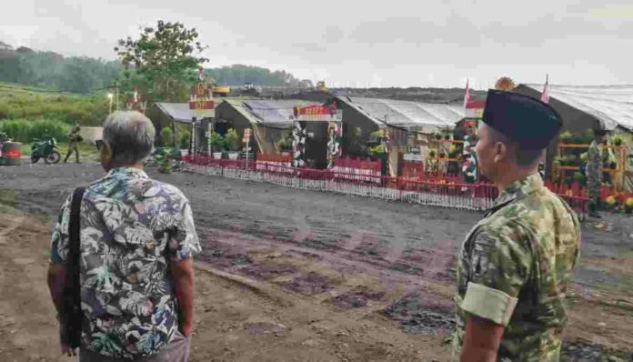 Mayor Inf Isa menunjukkan lokasi markas Yonif TP 886/Panjalu Jayati yang sedang dalam pembangunan dan berdekatan dengan Marshalling Area markas saat ini di Desa Manding Kecamatan Pucanglaban.