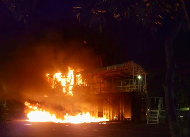 Sejumlah Pos Polisi di Surabaya dibakar pada Jumat (29/8) malam.