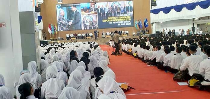 Suasana penuh semangat mewarnai acara Pengenalan Kehidupan Kampus bagi Mahasiswa Baru (PKKMB) di Institut Teknologi Sepuluh Nopember (ITS), Senin (4/8/2025). Sebanyak 6.993 mahasiswa baru ITS 2025 resmi diterima menjadi bagian dari kampus teknik ternama di Indonesia tersebut.
