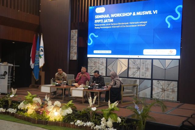 Forum Perpustakaan Perguruan Tinggi Indonesia Jawa Timur bekerja sama dengan Universitas Muhammadiyah Malang (UMM) sukses menyelenggarakan Seminar, Workshop dan Musyawarah Wilayah (Muswil) VI FPPTI Jawa Timur pada jum’at, 28 November 2025 di Rays UMM Hotel Malang. Kegiatan ini diikuti oleh pustakawan, pemerhati dan pengelola perpustakaan dari pelbagai perguruan tinggi di Jawa Timur.
