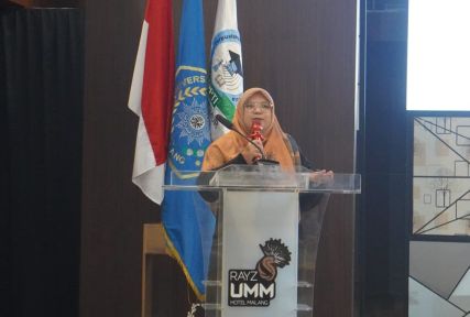 Ketua FPPTI Jawa Timur periode tahun 2025-2028., Melati Purba Bestari, S.Sos., M.SIP dalam Workshop dan Muswil VI FPPTI Jawa Timur di Rays UMM Hotel Malang, Jum’at, (28/11/2025)