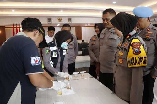 Pelaksanaan tes urine diawasi Wakapolres Situbondo, Kompol Indah Citra Fitriani bersama Kasi Propam, Ipda I Komang Adi Aryama. Kegiatan ini dalam rangka mitigasi penyalahgunaan Narkoba bagi personel Polres Situbondo dan Polsek.