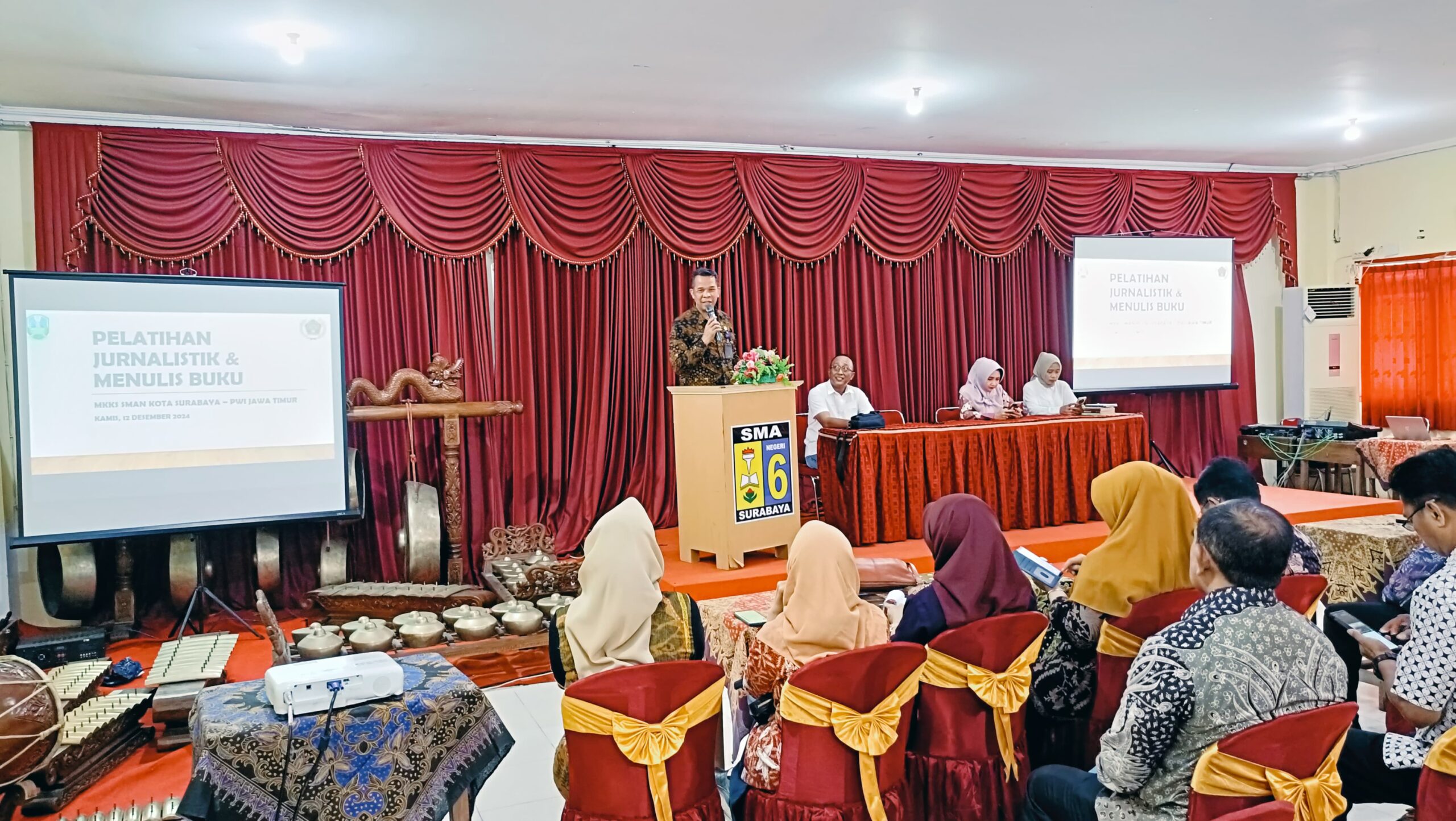 Pelatihan jurnalistik dan menulis buku dengan menghadirkan pemateri dari Persatuan Wartawan Indonesia (PWI) Jatim, di Aula SMA Negeri 6 Surabaya, Kamis (12/12/2024).