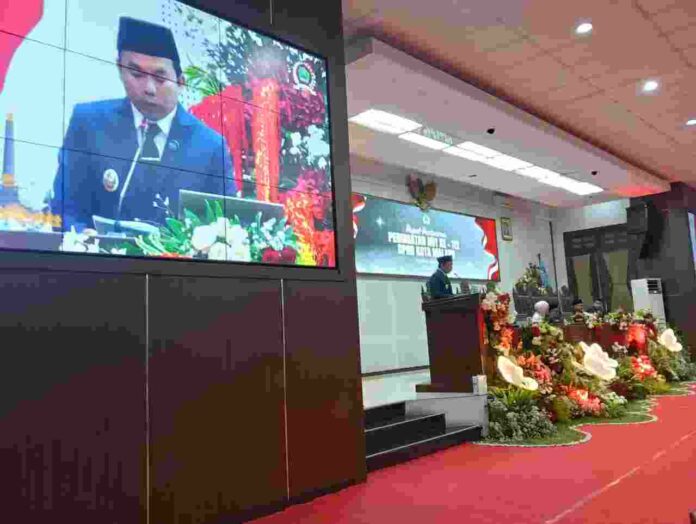 Wakil Wali Kota Malang Ali Muthohirin menyampaikan pidato pada rapat paripurna DPRD Kota Malang Selasa (31/3/2026).