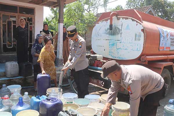 Kepedulian terhadap warga yang terdampak kekeringan ditunjukkan Polres Probolinggo bersama Badan Penanggulangan Bencana Daerah (BPBD) Kabupaten Probolinggo. Senin (11/8), dengan mendistribusikan air bersih di Desa Tulupari dan Desa Rejing, Kecamatan Tiris.