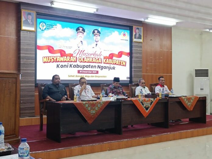 Musyawarah Olahraga Kabupaten (Musorkab) KONI Kabupaten Nganjuk yang digelar Sabtu (20/12/2025) di Ruang Anjuk Ladang Gedung Bappeda, berlangsung dalam suasana tertib dan penuh konsensus. Forum tertinggi organisasi olahraga daerah itu menjadi ajang evaluasi, konsolidasi, sekaligus penentuan arah pembinaan olahraga Kabupaten Nganjuk ke depan