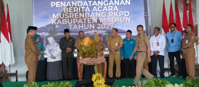 Pemerintah Kabupaten (Pemkab) Madiun melalui Badan Perencanaan Pembangunan, Riset dan Inovasi Daerah (Bapperida) menggelar Musyawarah Perencanaan Pembangunan (Musrenbang) Rencana Kerja Pemerintah Daerah (RKPD) Tahun 2027 di Pendopo Ronggo Djoemeno, Caruban, Selasa (31/3/2026).