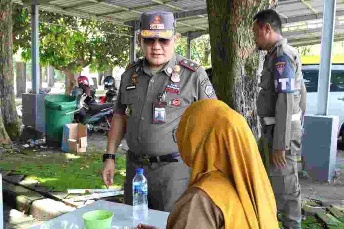 Kasatpol PP Pemkab Gresik Agustin Halomoan Sinaga saat memimpin langsung operasi penertiban ASN, Selasa (14/4/2026), foto kerin ikanto/bhirawa.