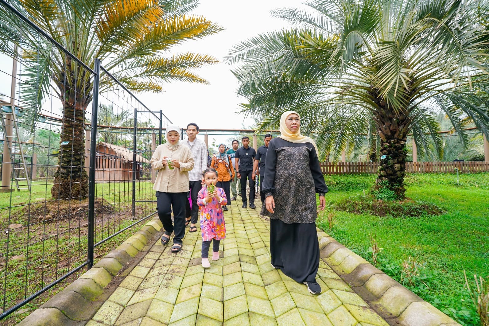 Gubernur Jatim terpilih, Khofifah Indar Parawansa, memanfaatkan momen libur panjang dengan mengajak cucunya, Aila, menikmati wisata edukatif di Kurma Park, Kabupaten Pasuruan. Destinasi ini menawarkan pengalaman unik bagi wisatawan yang ingin melihat langsung ratusan pohon kurma yang tumbuh subur dan berbuah lebat, sekaligus menikmati suasana wisata alam yang asri.