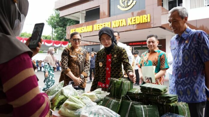 Wali Kota Kediri Vinanda Prameswati membuka pelaksanaan Operasi Pasar Murni (OPM) di Halaman Kantor Kejaksaan Negeri Kota Kediri, Jumat (19/12). Kegiatan ini merupakan kolaborasi antara Pemerintah Kota Kediri dan Kejaksaan Negeri Kota Kediri dalam menjaga ketersediaan serta stabilitas harga bahan pokok, khususnya menjelang Natal dan Tahun Baru.