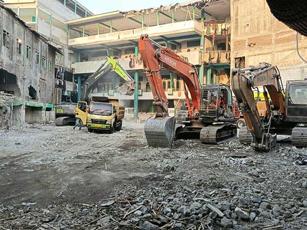 Material bangunan yang menggunung di awal kejadian, kini telah bersih setelah dilakukan aksi percepatan penanganan dengan menggunakan sejumlah alat berat.