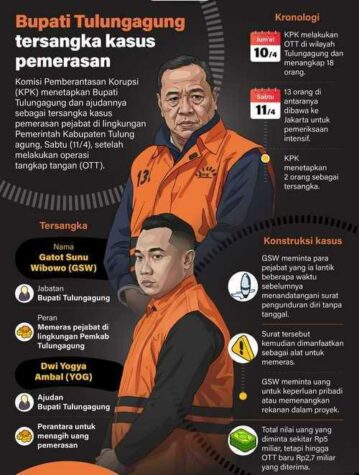 OTT KPK terhadap Bupati Tulungagung meng-genapi operasi senyap yang ke-10 sepanjang 3,5 bulan tahun 2026. Tak peduli walau kader partai Gerindra. Sangat viral di media sosial, terutama berkait gaya hedonis (mewah). Padahal kepemimpinan Gatut Sunu Wibowo, baru periode pertama, dan belum genap dua tahun (masih 14 bulan). Tetapi sudah berani mengendalikan paksa psikologis Kepala OPD dengan mens-rea yang nyata.