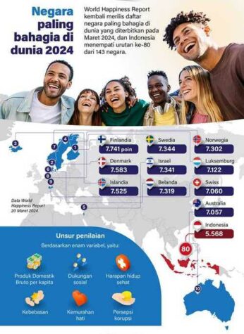 Selaras dengan survei lain, yang dilakukan Great Power Index (tahun 2024). Hasilnya, menempatkan Indonesia pada peringkat ke-2, sebagai “Rakyat Paling Bahagia.” Peringkat ini menunjukkan bahwa mayoritas penduduk Indonesia merasa bahagia dan puas dengan keadaan kehidupan sehari-hari. Bahkan melampaui beberapa negara berpanghasilan tinggi, dan maju seperti Belanda, Swiss, dan Australia.