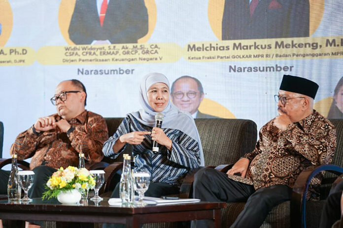 Hal tersebut disampaikan Gubernur Khofifah saat menyampaikan Keynote Speech pada Sarasehan Nasional bertema “Obligasi Daerah sebagai Salah Satu Alternatif Pembiayaan Daerah dan Instrumen Investasi Publik” yang digelar MPR RI di Hotel Wyndham Surabaya, Kamis (5/2).