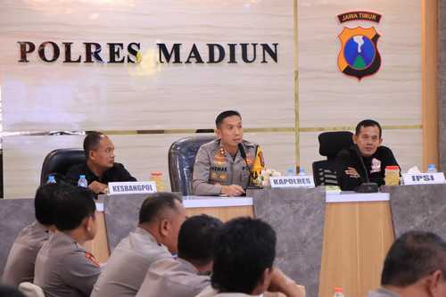 Menjelang pelaksanaan pengesahan warga baru IKS PI Kera Sakti, Polres Madiun menggelar Rapat Koordinasi lintas sektor yang dipimpin Kapolres Madiun AKBP Kemas Indra Natanegara, SH SIK MSi, bertempat di Gedung Tantya Sudhirajati Mapolres Madiun, Selasa (22/7).