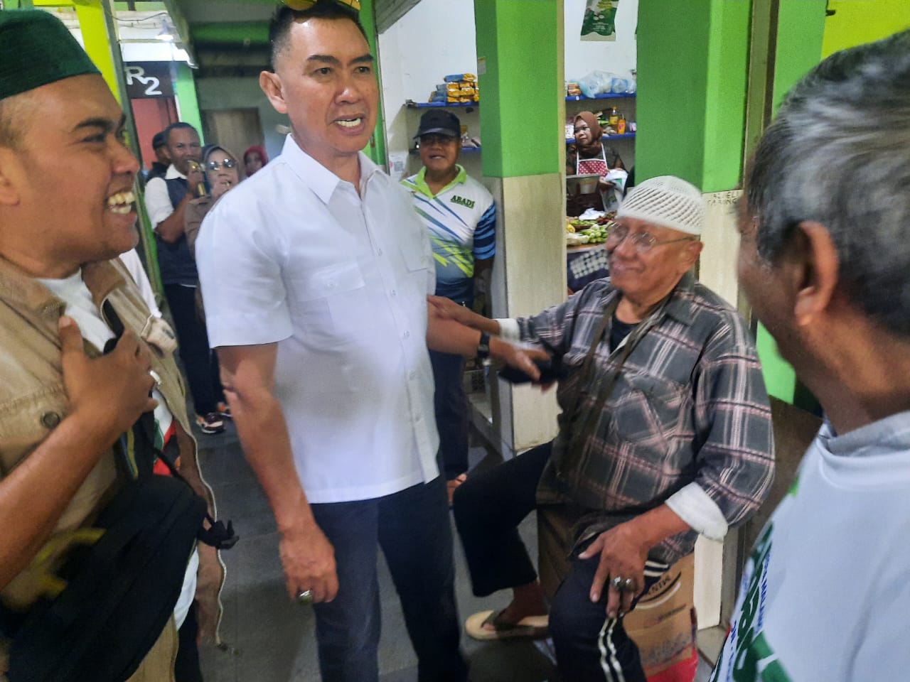 Kunjungan Abah Anton dan H. Dimyati di Pasar Sawojajar Kota Malang, Senin (7/10/2024) , disambut antusias pedagang setempat.