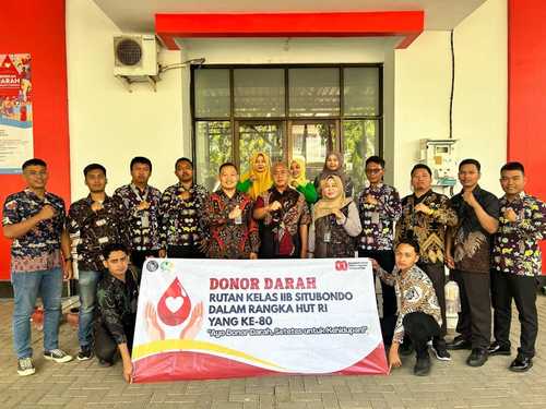 Dalam semangat memperingati Hari Ulang Tahun Kemerdekaan Republik Indonesia yang ke-80, Rumah Tahanan Negara Kelas IIB Situbondo Kanwil Ditjen Pemasyarakatan Jatim menggelar kegiatan donor darah yang melibatkan seluruh pegawai serta Paguyuban Ibu-Ibu Pemasyarakatan (PIPAS) Cabang Rutan Situbondo, Jumat (22/8).