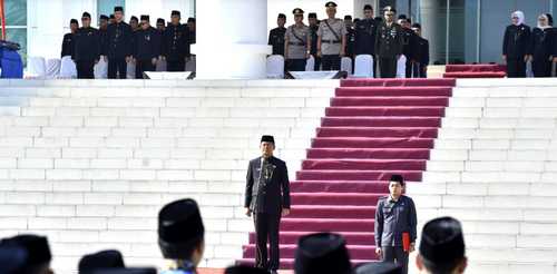Dalam amanatnya, Sekda Yudha membacakan sambutan Gubernur JawaTimur, Khofifah Indar Parawansa.