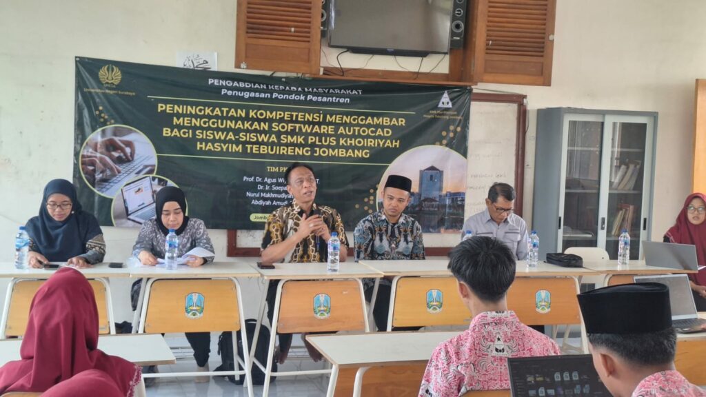 Dalam rangka meningkatkan kompetensi professional yang merupakan pelaksanaan pengembangan diri bagi siswa maka Universitas Negeri Surabaya bekerjasama SMK Plus Al Khoiriyah Tebuireng Jombang mengadakan pelatihan penggunaan software Autocad yang hasilnaya akan digunakan untuk pembelajaran di SMK dalam upaya peningkatan kompetensi siswa -siswa SMK Plus Al Khoiriyah Tebuireng Jombang serta untuk pembelajaran pada siswa pada kompetensi keahlian Desain Pemodelan dan Informasi Bangunan (DPIB).