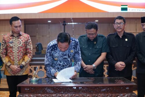 Pemerintah Kabupaten Lamongan bersama Dewan Perwakilan Rakyat Daerah (DPRD) Kabupaten Lamongan menyetujui Rancangan Peraturan Daerah tentang Anggaran Pendapatan dan Belanja Daerah (Raperda APBD) tahun anggaran 2026 menjadi Perda, Kamis (27/11) di Ruang Rapat Paripurna DPRD Kabupaten Lamongan.