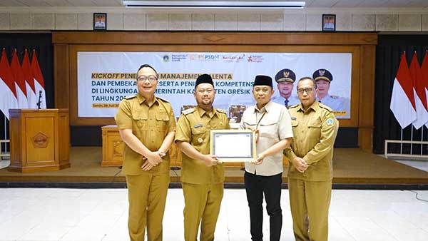 Pemerintah Kabupaten (Pemkab) Gresik resmi meluncurkan penerapan Manajemen Talenta ASN tahun 2025 melalui kegiatan Kick Off dan Pembekalan Peserta Penilaian Kompetensi ASN, yang digelar di Ruang Mandala Bhakti Praja, Kantor Bupati Gresik, Senin ( 28 Juli).