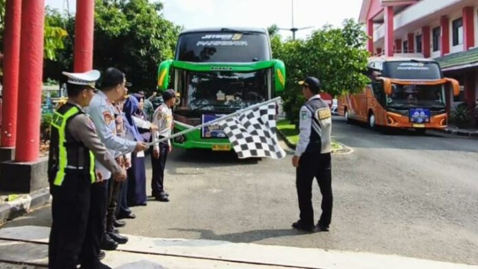 Sebanyak 100 peserta diberangkatkan menggunakan dua armada bus pada Selasa (24/3). Masing-masing bus memiliki kapasitas 50 orang.
