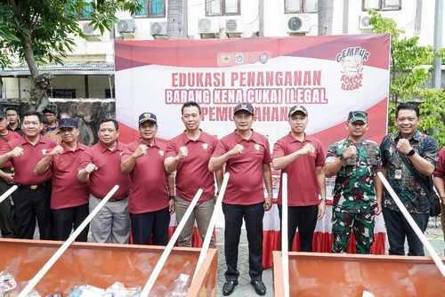 Pemerintah Kabupaten Lamongan berkolaborasi bersama Kejaksaan Negeri Kabupaten Lamongan, Satpol PP, dan Kantor Pengawasan dan Pelayanan Bea dan Cukai (KPPBC) Tipe Madya Pabean B Gresik, musnahkan Barang Bukti (BB) perkara tindak pidana umum yang telah berkekuatan hukum tetap atau inkracht dan barang milik negara hasil penindakan operasi pemberantasan Barang Kena Cukai (BKC) ilegal tahun 2025, Selasa (29/7) di Kantor Kejaksaan Negeri Kabupaten Lamongan.