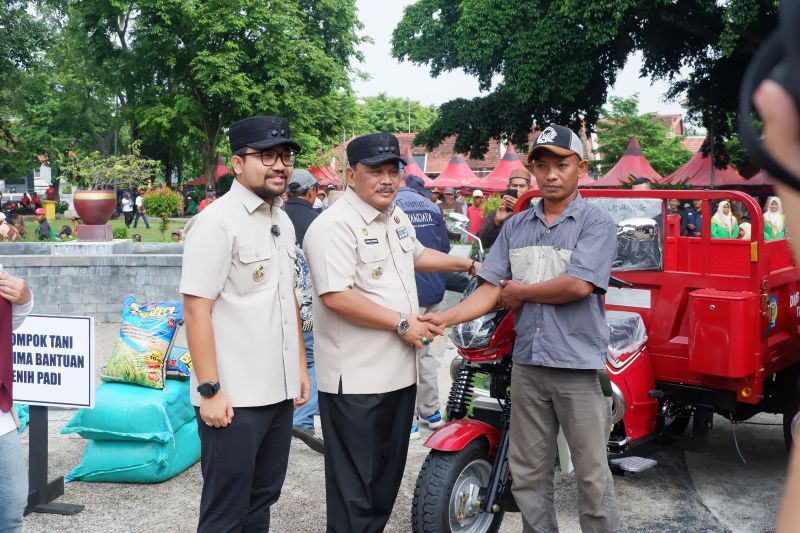 Deretan hand tractor, kendaraan roda tiga, hingga paket benih dan pupuk tersusun rapi, seolah menjadi simbol bahwa pemerintah daerah tidak ingin petani berjalan sendirian.