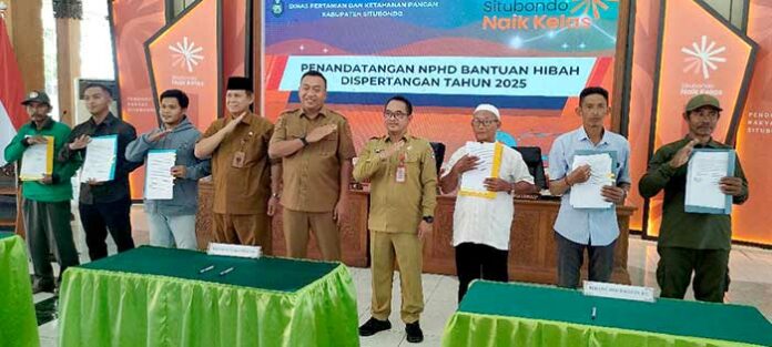 Pemkab Situbondo melalui Dinas Pertanian dan Ketahanan Pangan (Dispertangan) Kabupaten Situbondo, menyelenggarakan penandatanganan Naskah Perjanjian Hibah Daerah (NPHD) dengan 124 Kelompok Tani (Poktan), Senin (15/9). Acara tersebut berlangsung di Pendapa Rakyat Situbondo.