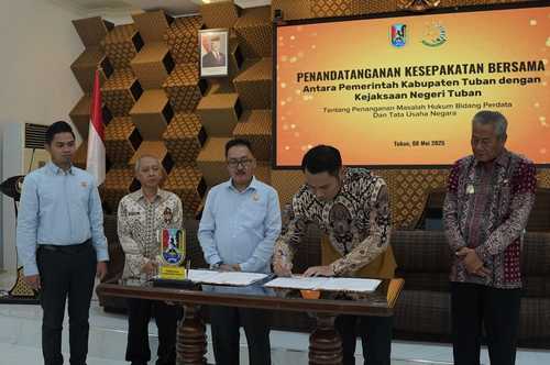 Pemerintah Kabupaten (Pemkab) Tuban bersama Kejaksaan Negeri setempat menandatangani kesepakatan bersama tentang Penanganan Masalah Hukum di Bidang Perdata dan Tata Usaha Negara, Kamis (08/05/2025).