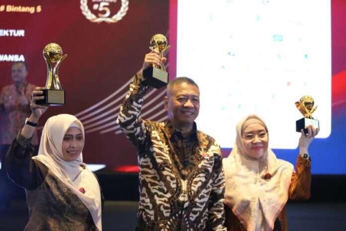 Bupati Gatut Sunu, Suhermin dan Imro’atul Mufidah saat menerima penghargaan di ajang TOP BUMD Awards 2025.