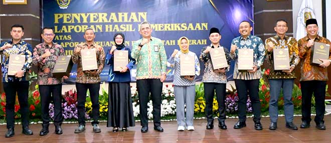 Diketahui, Opini WTP untuk Kota Batu langsung diberikan oleh Kepala BPK RI Perwakilan Jawa Timur, Yuan Candra Jaisin, kepada Wali Kota Batu, Nurochman dalam acara Penyerahan LHP LKPD Pemerintah Kabupaten dan Kota di Jawa Timur, Jumat (2/5). Di acara yang dilaksanakan di Kantor BPK RI Perwakilan Jawa Timur yang berlokasi di Sidoarjo, Nurochman didampingi Ketua DPRD Kota Batu Didik Subianto, Sekda Zadim Effisiensi, Plt Inspektur Kota Batu Sugeng Pramono, dan Kepala BKAD Eny Rachyuningsih. [nas.gat]