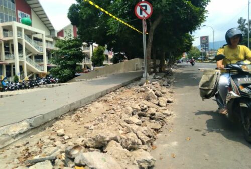 Jalur pedestrian atau trotoar yang dibongkar akan digeser sekaligus dipadukan dengan penutupan saluran drainase terbuka menggunakan box culvert. Dengan perbaikan ini dipastikan kawasan depan Pasar Induk Among Tani akan memiliki wajah baru sekaligus menambah kenyamanan warga yang hendak berkunjung ke pasar.