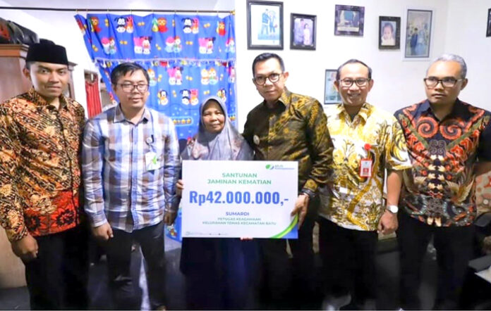 Dan untuk menunjukkan komitmen tersebut, Pemerintah Kota Batu telah menyerahkan santunan kematian kepada tiga ahli waris pekerja keagamaan di Kota Batu yang telah meninggal dunia. “Hal ini sebagai wujud komitmen pemkot dalam memastikan perlindungan jaminan sosial ketenagakerjaan tak hanya bagi pekerja formal tetapi juga pekerja sektor informal,” jelas Nurochman.
