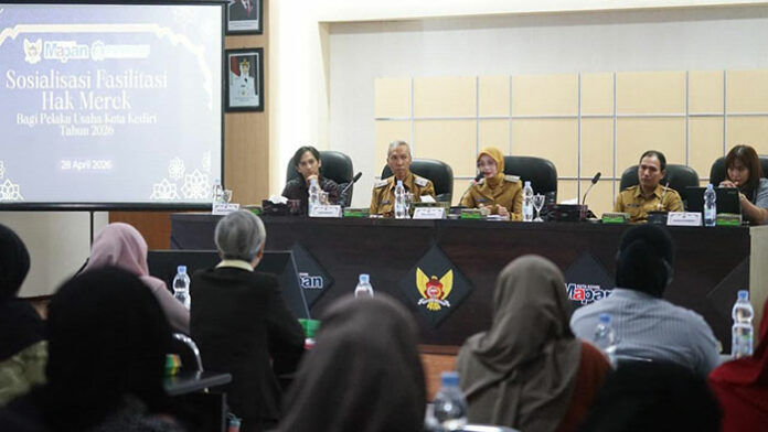 Pemerintah Kota Kediri mefasilitasi pendaftaran hak merek gratis bagi 31 pelaku usaha pada 2026. Program tersebut mulai disosialisasikan kepada 73 pelaku usaha di Ruang Kilisuci, Balai Kota Kediri, Selasa (28/4).