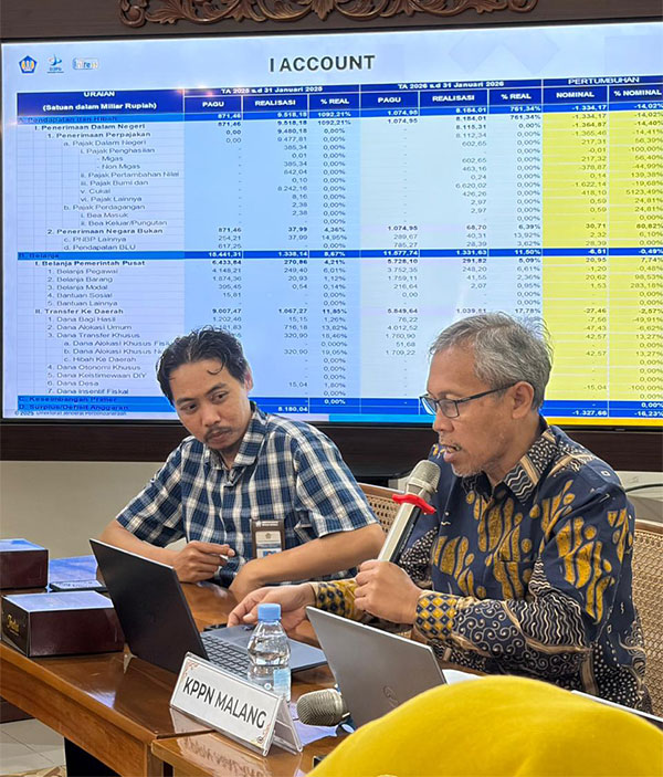 “Kinerja APBN awal tahun ini terus kita kawal melalui berbagai program prioritas nasional. Fokus kita tidak hanya pada pendapatan, tapi juga bagaimana belanja negara bisa tersalurkan secara tepat waktu dan tepat sasaran,” ujar Muhammad Rusna dalam Forum Group Discussion (FGD) di Gedung RCE Center Malang, Selasa (10/2).