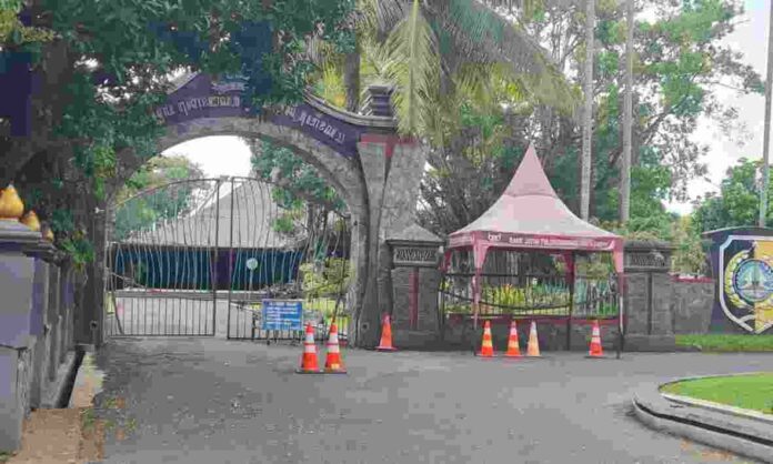 Pendopo Kongas Arum Kusumaning Bongso masih tampak sepi dari aktivitas dan pintu gerbangnya masih ditutup, Selasa (14/4) siang.
