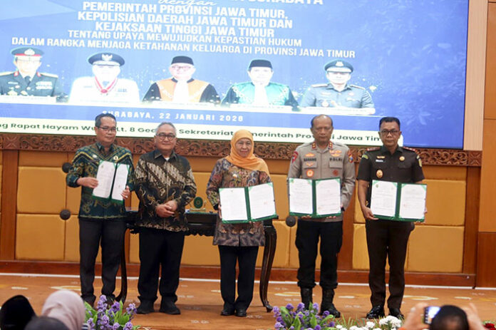 Penguatan ketahanan keluarga menjadi titik tekan dalam penandatanganan nota Kesepakatan (Memorandum of Agreement) antara Pengadilan Tinggi Agama (PTA) Surabaya dengan Pemerintah Provinsi Jawa Timur, Polda Jawa Timur, dan Kejaksaan Tinggi Jawa Timur.