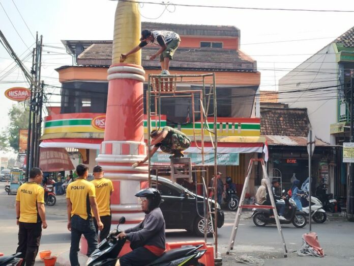 Pengecatan Tugu Perjuangan, Wujud Sinergi Sambut Hari Kemerdekaan di Dlanggu – Mojokerto
